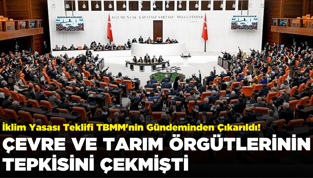 Çevre ve tarım örgütleri tarafından tepkilerin odağı olan 'İklim Yasası' teklifinin ilk 4 maddesi genel kuruldan geçmişti. Edinilen son bilgiye göre, kanun teklifi TBMM Genel Kurulu'nun gündeminden çıkarıldı.