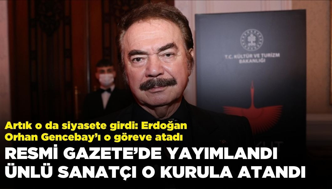 Ünlü sanatçı Orhan Gencebay, Cumhurbaşkanı Recep Tayyip Erdoğan’ın imzasıyla yayımlanan kararnameyle Kültür ve Sanat Politikaları Kurulu üyeliğine atandı. 9 Nisan 2025 Çarşamba günü yayımlanan ve 32865 sayılı Resmi Gazete’de yer alan atama kararıyla birlikte Gencebay, Cumhurbaşkanlığı bünyesindeki kurullarda görev alacak önemli isimler arasında yerini aldı.