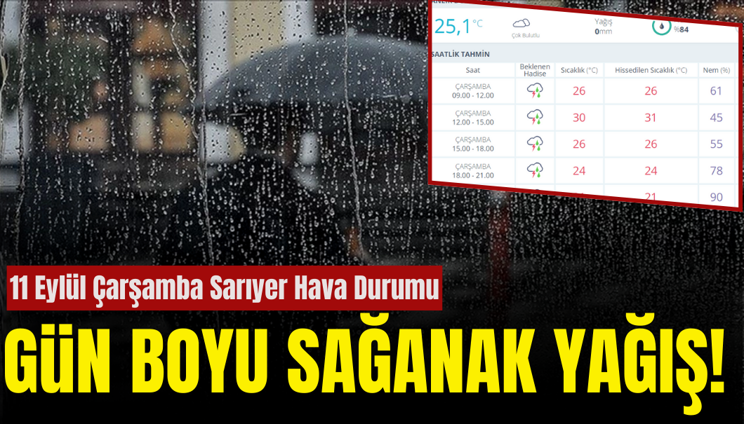 11 Eylül Çarşamba Sarıyer Hava Durumu: Gün Boyu Yağış!
