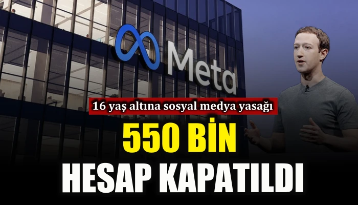 Avustralya Medya Kuruluşu'nun Meta'nın açıklamasına dayandırdığı haberine göre, şirket 16 yaş altına ait olduğunu tespit ettiği yaklaşık 550 bin hesabın devre dışı bırakıldığını belirterek, Instagram'dan yaklaşık 330 bin, Facebook'tan 173 bin, Threads'ten de 39 bin hesabın 4-11 Aralık 2025 tarihlerinde kapatıldığını duyurdu.