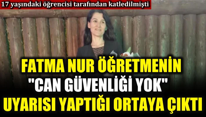 17 yaşındaki öğrencisi tarafından katledilen Fatma Nur öğretmenin "can güvenliği yok" uyarısı yaptığı ortaya çıktı