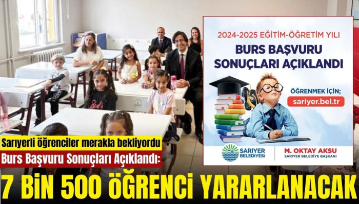 Sarıyer Belediyesi'nin Sarıyer'de ikamet eden 7 bin 500 öğrenciye vereceği bursun, başvuru sonuçları açıklandı. 7 bin 500 öğrenci aylık 500 lira destek alacak.