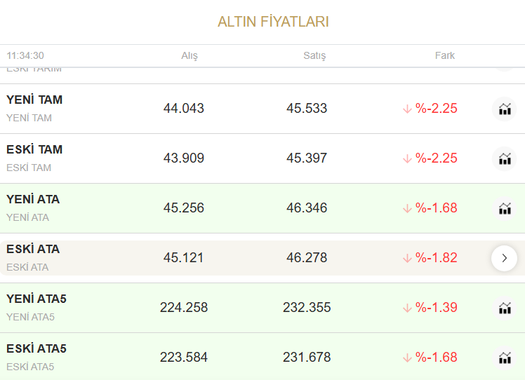 Bugün ise ABD Başkanı Trump'ın savaşın önümüzdeki birkaç hafta daha devam edeceğini ve şiddetli saldırıların yaşanacağını açıklamasının ardından altın fiyatları sert düşüş yaşadı.