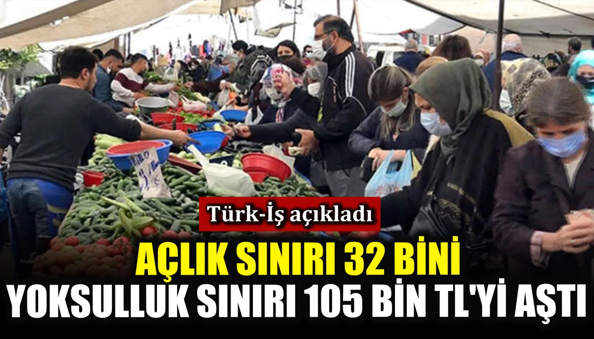 TÜRK-İŞ, Ankara’da yaşayan dört kişilik bir ailenin şubat ayı içerisinde açlık sınırının 32 bin 365 TL’ye, yoksulluk sınırı ise 105 bin 424 TL’ye yükseldiğini açıkladı.