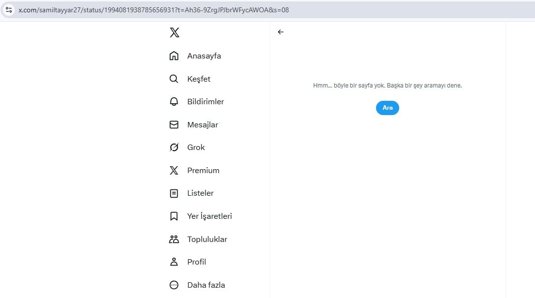 ŞAMİL TAYYAR DAHA SONRA PAYLAŞIMINI SİLDİ
