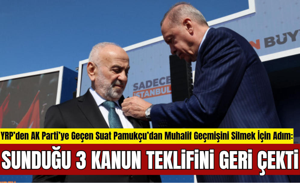 Yeniden Refah Partisi'nden ayrılarak AK Parti'ye geçen İstanbul Milletvekili Suat Pamukçu, Meclis'e sunduğu önergeleri geri çekerek, muhalif geçmişine dair izleri ortadan kaldırdı. Pamukçu, muhalif bir vekilken Meclis’e sunduğu üç kanun teklifini geri çekti.