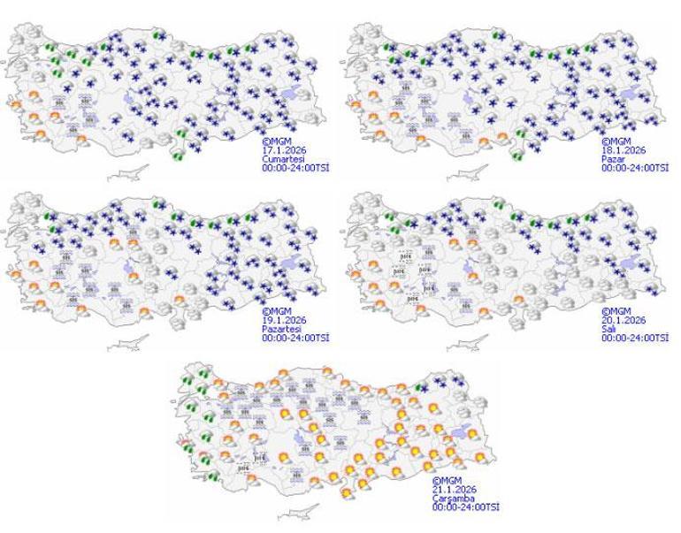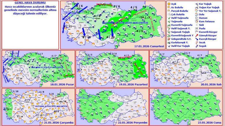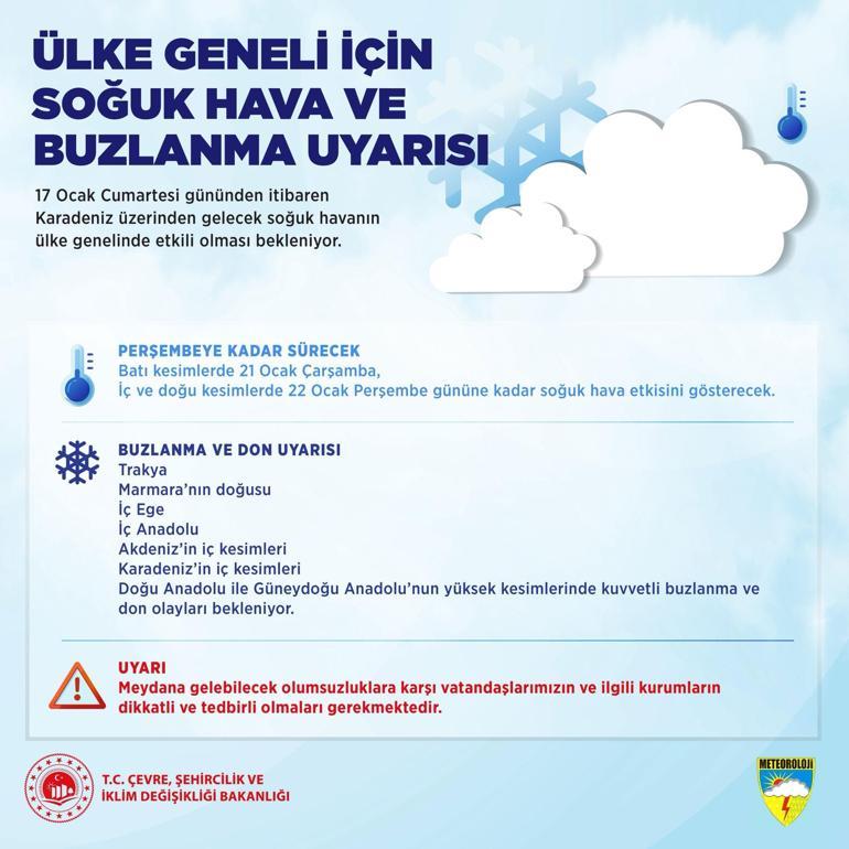 Çevre, Şehircilik ve İklim Değişikliği Bakanlığı, 17–22 Ocak tarihleri arasında ülke genelinde soğuk havanın etkili olacağını duyurdu.