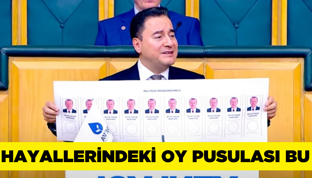 DEVA Partisi lideri Babacan, grup toplantısında Erdoğan’ın fotoğraflarının yer aldığı bir oy pusulası göstererek "İktidarın hayallerindeki, rüyalarındaki oy pusulası bu" ifadelerini kullandı.