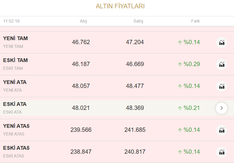 Altın fiyatları yatırımcılar tarafından "güvenli liman" olarak görüyorken, sarı metalin alış-satış fiyatları anbean takip ediyor. Ayrıca vatandaşlar arama motorundan “Bugün altın ne kadar oldu?” “ Gram altın fiyatı ne kadar?” sorularını aratıyor. Peki güncel altın fiyatları ne kadar? İşte altın fiyatları…