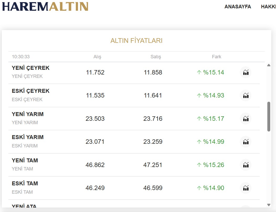 Güncel Harem altın fiyatları: