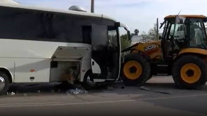 Edinilen bilgilere göre, Kiriş Mahallesi'ndeki otele gitmek üzere yola çıkan, içinde 15 çocuk, 2 eğitmen ve 9 velinin bulunduğu 32 AEC 039 plakalı midibüs, M.C. yönetimindeki iş makinesiyle çarpıştı.