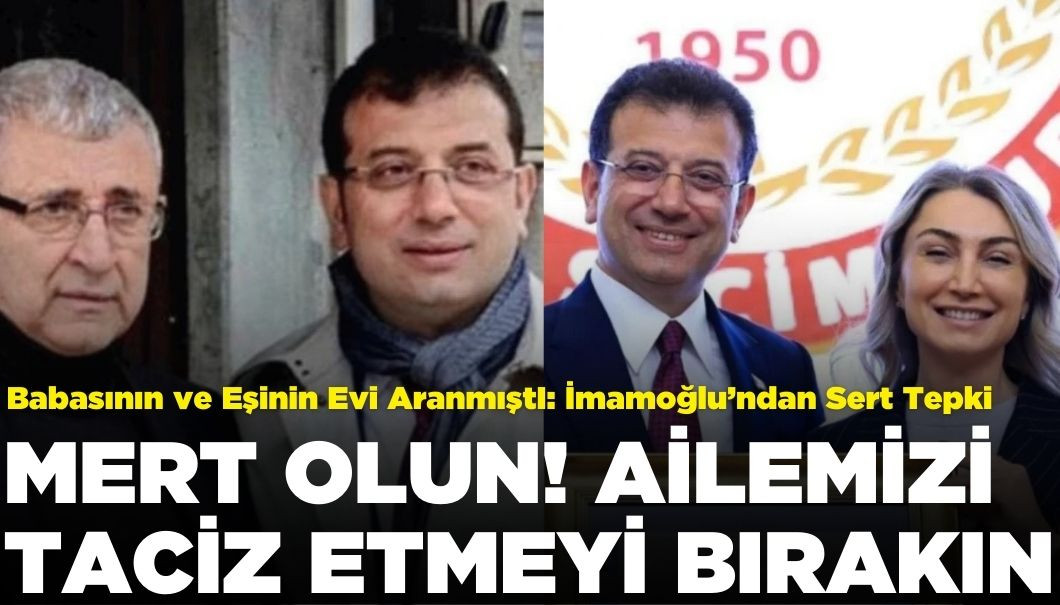 İstanbul Büyükşehir Belediye (İBB) Başkanı ve Cumhuriyet Halk Partisi’nin (CHP) cumhurbaşkanı adayı Ekrem İmamoğlu, ailesine yönelik gerçekleştirilen ev aramaları sonrası sert açıklamalarda bulundu. Babası Hasan İmamoğlu ile eşi Dilek İmamoğlu’nun evlerinin jandarma eşliğinde aranmasına tepki gösteren İmamoğlu, yapılanları "aileye yönelik bir taciz" olarak nitelendirdi.