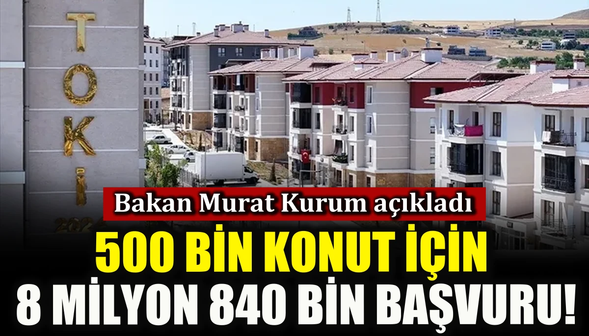 Çevre ve Şehircilik Bakanı Murat Kurum, TOKİ’nin 81 ilde yapacağı 500 bin konut için 8 milyon 840 bin 314 başvuru yapıldığını açıkladı.