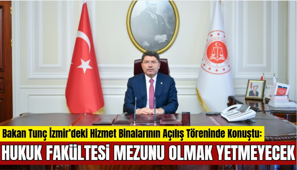 Adalet Bakanı Yılmaz Tunç, İzmir Adli Tıp Kurumu Grup Başkanlığı ile İzmir ve Karşıyaka Denetimli Serbestlik Müdürlükleri hizmet binalarının açılış törenlerine katıldı. Bakan Tunç konuşmasında, "Yargı hizmetlerinin etkinliğini artırmak, adalete güveni daha da artırmak noktasında daha fazla mesafe almak için koyacağımız hedefleri hızlı bir şekilde gerçekleştirmenin gayreti içerisinde olacağız" ifadelerini kullandı.