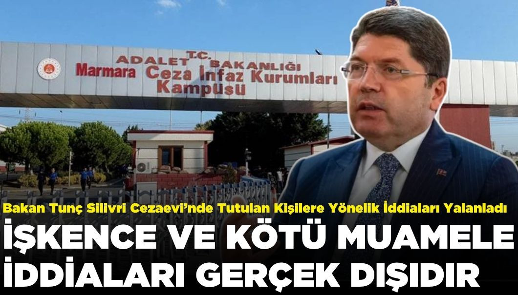 Adalet Bakanı Yılmaz Tunç, Silivri Cezaevi'nde İBB soruşturmasında tutuklanan bazı kişilere yönelik; aile görüşmeleri, sağlık, hijyen, barınma ve diğer temel hakların engellendiğine dair iddiaları yalanladı. Tunç, Marmara Kapalı Ceza İnfaz Kurumu'ndaki tutuklu ve hükümlülere yönelik ortaya atılan iddiaların 'maksatlı ve tamamen asılsız' olduğunu belirtti.