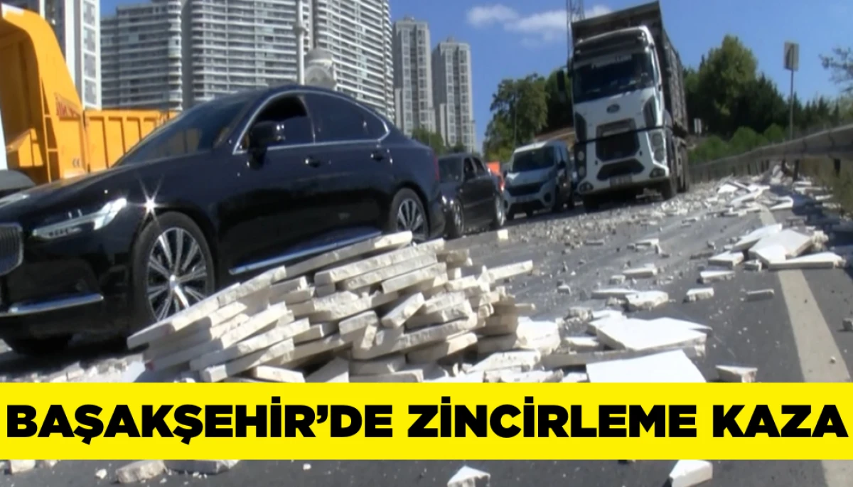 Başakşehir'de TIR'dan yola saçılan mermer parçaları trafiği durma noktasına getirdi. Bir su tankerinin lastiği patlarken, yol İBB ekiplerince temizlendi.