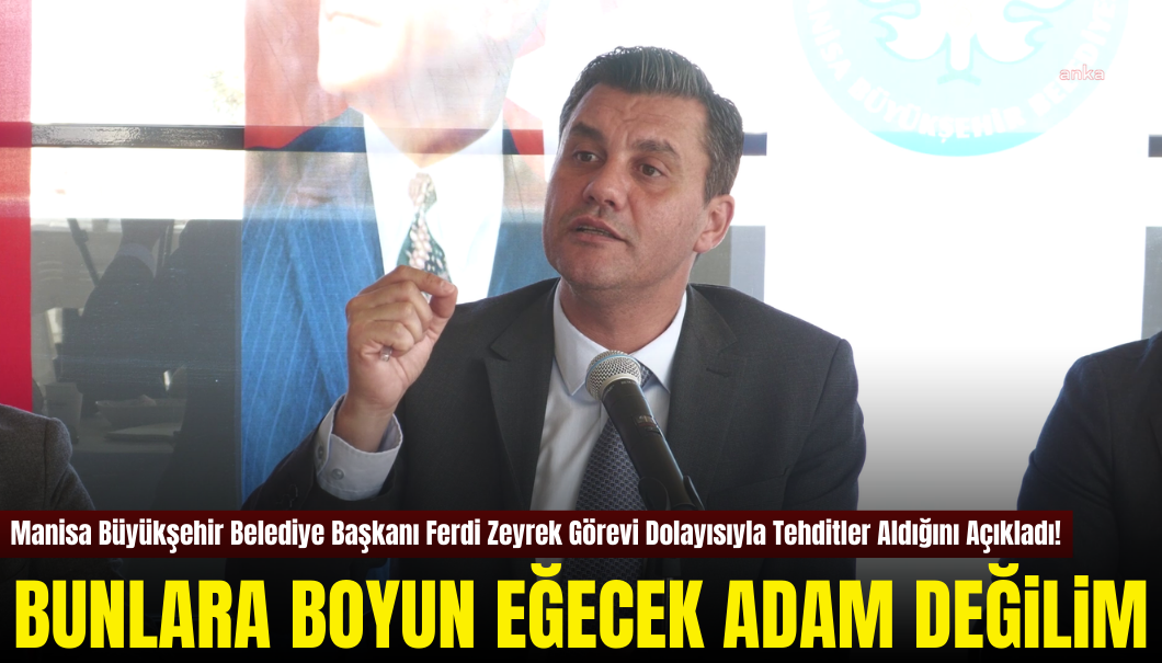 Manisa Büyükşehir Belediye Başkanı Ferdi Zeyrek, kayyum atamalarıyla ilgili bir tehdit almadığını ancak görevi dolayıyla tehdit edildiğini ve suç duyurusunda bulunduğunu söyledi.