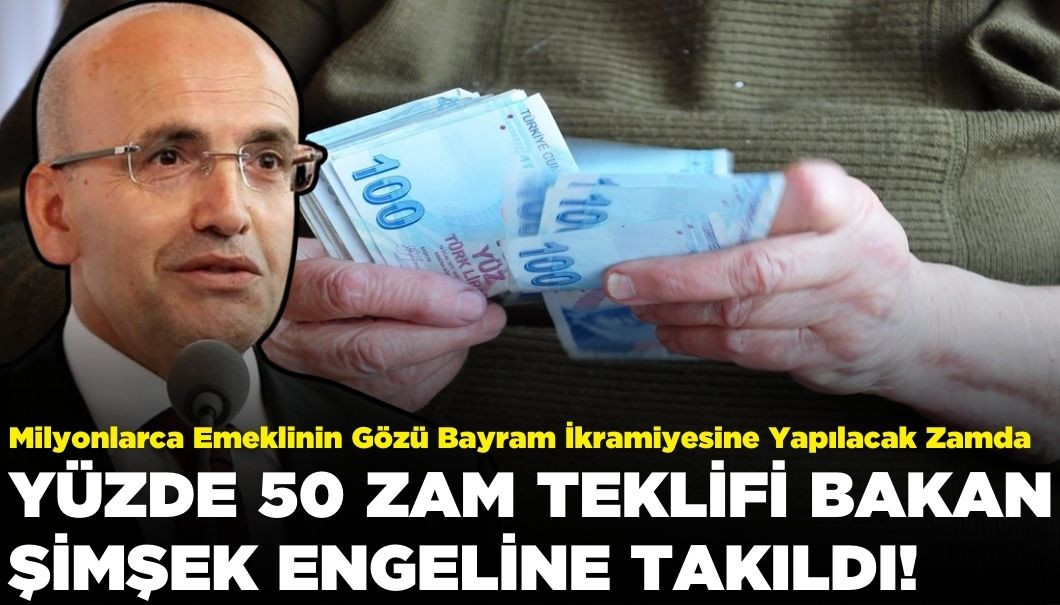 Ramazan bayramı ikramiyesine yapılan yüzde 50 zam teklifi, Bakan Mehmet Şimşek engeline takıldı. Yüzde 15,75’lik maaş zammı formülü gündeme gelirken, bu şartlarda ikramiyenin 3 bin 500 TL olacağı anlaşıldı.