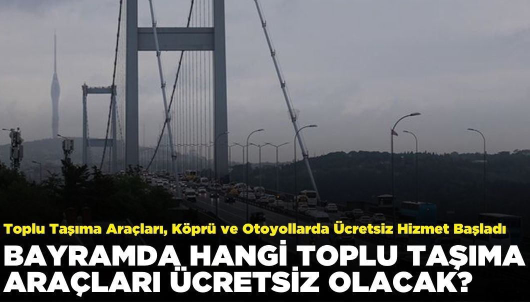 Resmi Gazete’de yayımlanan Cumhurbaşkanı kararına göre, 29 Mart’tan 2 Nisan Çarşamba günü saat 07.00’a kadar bazı toplu taşıma araçları, köprü ve otoyollar ücretsiz olacak.