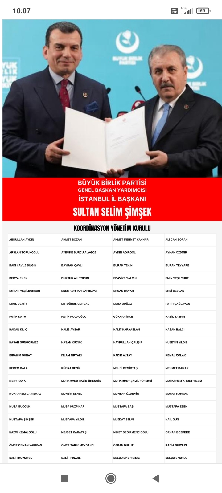 BBP İstanbul İl Başkanı Sultan Selim Şimşek’in liderliğinde oluşturulan Koordinasyon Yönetim Kurulu, partinin İstanbul’daki gücünü pekiştirmeyi ve 17 Mayıs’taki kongreye güçlü bir organizasyonla girmeyi hedefliyor. Listede yer alan isimlerin, İstanbul’un farklı ilçelerini temsil eden ve toplumun çeşitli kesimlerinden gelen liyakatli kişilerden oluştuğu vurgulandı.