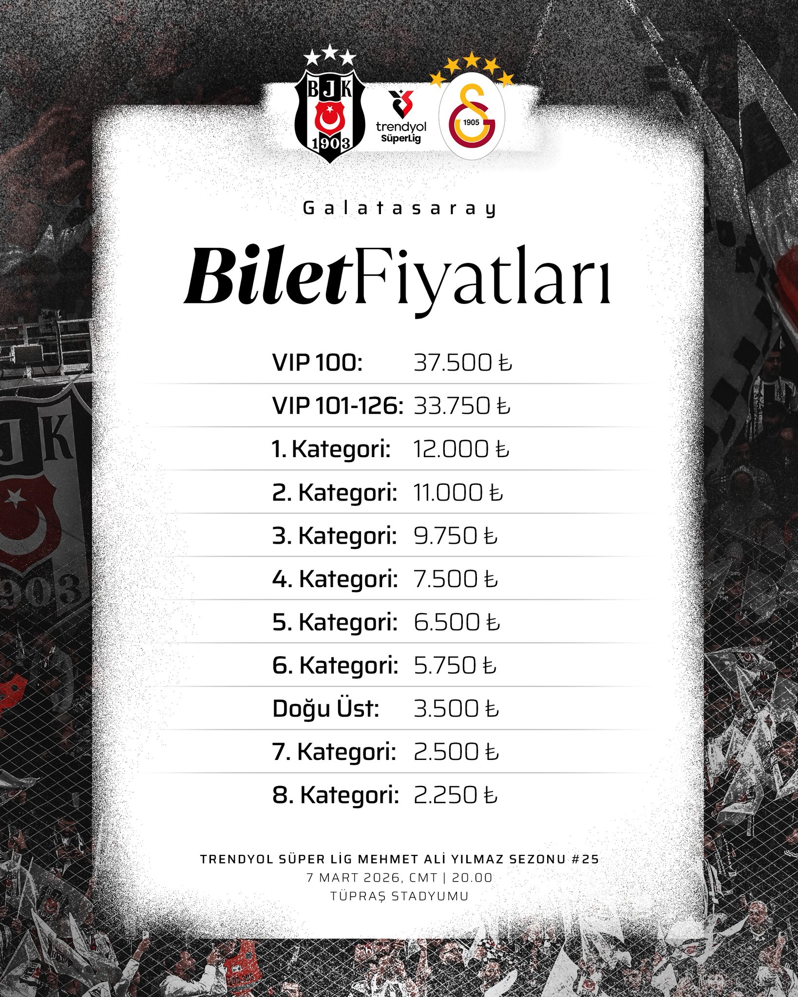 Trendyol Süper Lig’de şampiyonluk yarışını doğrudan etkileyecek Beşiktaş-Galatasaray derbisinin bilet fiyatları açıklandı. Peki, derbinin bilet fiyatları ne kadar, en ucuz ve en pahalı bilet kaç TL? İşte detaylar...