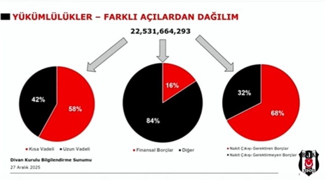 Beşiktaş Divan Kurulu'nun olağan toplantısında kulübün güncel borcu açıklandı. Rakamlara göre, siyah beyazlıların toplam borcu 22 milyar 531 milyon 664 bin 293 TL oldu.