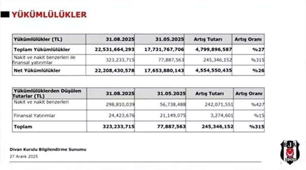 Akatlar Mustafa Kemal Merkezi'nde yapılan toplantıya Divan Kurulu Başkanı Ahmet Ürkmezgil başkanlık etti. Denetleme kurulunun açıkladığı son verilere göre Beşiktaş'ın toplam borcu 31.08.2025 itibariyle 22 milyar 531 milyon 664 bin 293 TL’ye yükseldi.