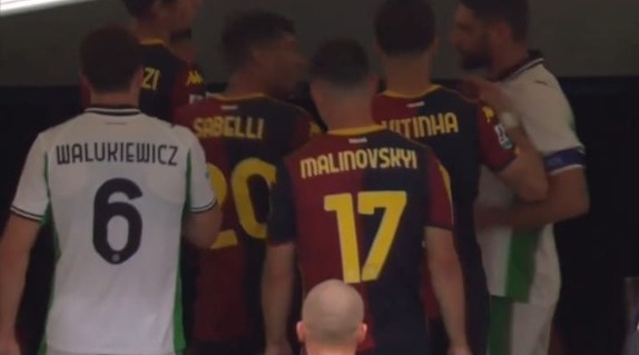 Maçın hakemi ilk yarının son düdüğünü çaldıktan sonra iki takım oyuncuları da soyunma odalarına giderken Genoalı Mikael Egill Ellertsson ile Sassuolo futbolcusu Domenico Berardi bir anda tartışmaya başladı. Kısa sürede kavgaya dönen olay diğer oyuncuların araya girmesiyle sona erdi. Kavganın ardından hakem iki oyuncuya da kırmızı kart gösterdi.