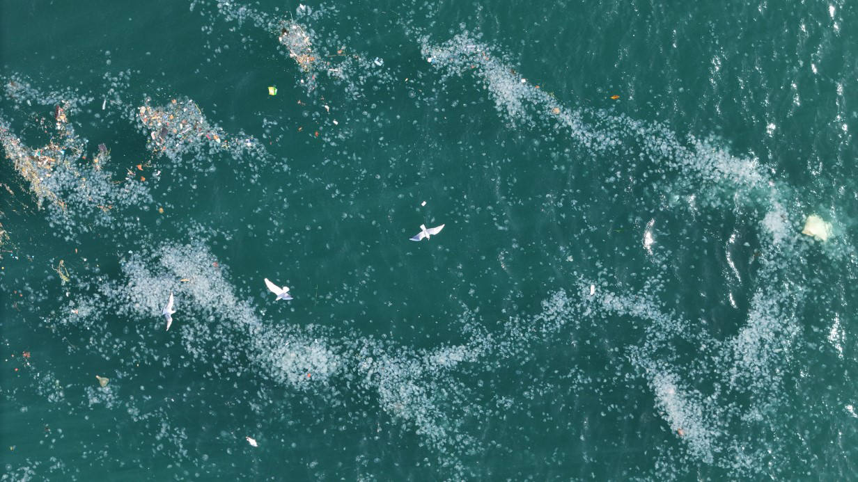 Bu kez Üsküdar’a bağlı Kandilli açıklarında, su yüzeyinde yoğun biçimde bir araya toplanan denizanası kolonileri, çevrede biriken atıklarla birlikte havadan görüntülendi. Görüntülerde, akıntı hatları boyunca birbirine yaklaşarak kümelenen deniz analarının yer yer beyaz çizgiler oluşturduğu gözlemlendi. Aynı bölgede, su yüzeyinde plastik poşetler, şişeler ve çeşitli evsel atıklar birikmiş haldeydi. Bu tablo, İstanbul Boğazı’ndaki kirlilik seviyesinin artmakta olduğunu ve deniz ekosisteminin doğal dengesinin önemli ölçüde etkilendiğini bir kez daha ortaya koydu.