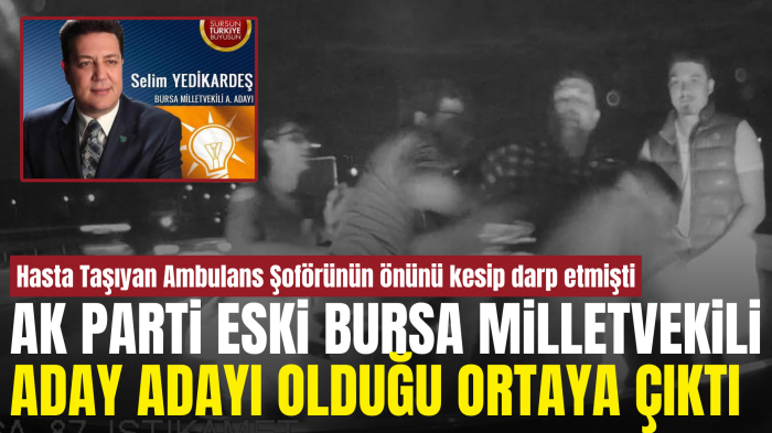 Bursa’da hasta taşıyan paramedik ambulans sürücüsü Muhammed Ali Karasulu, trafikte yol verme meselesi yüzünden tartıştığı eski AK Parti Milletvekili Aday Adayı Selim Yedikardeş ve oğlu Melih Yedikardeş tarafından darbedildi.