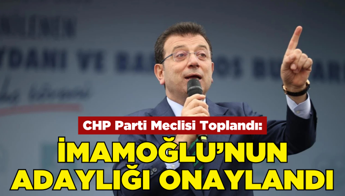 23 Mart'ta yapılan CHP'nin Cumhurbaşkanlığı ön seçiminde 15,5 milyona yakın oy alan İstanbul Büyükşehir Belediye (İBB) Başkanı Ekrem İmamoğlu'nun Cumhurbaşkanlığı adaylığı da oy birliğiyle resmileşti.