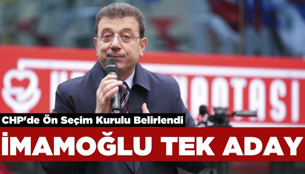 CHP'nin 23 Mart'ta gerçekleştireceği ön seçimde Ekrem İmamoğlu tek aday olarak yarışacak. Oy pusulaları 24 Şubat'ta basılmaya başlanacak. Ön seçim için beş kişilik kurul belirlendi.