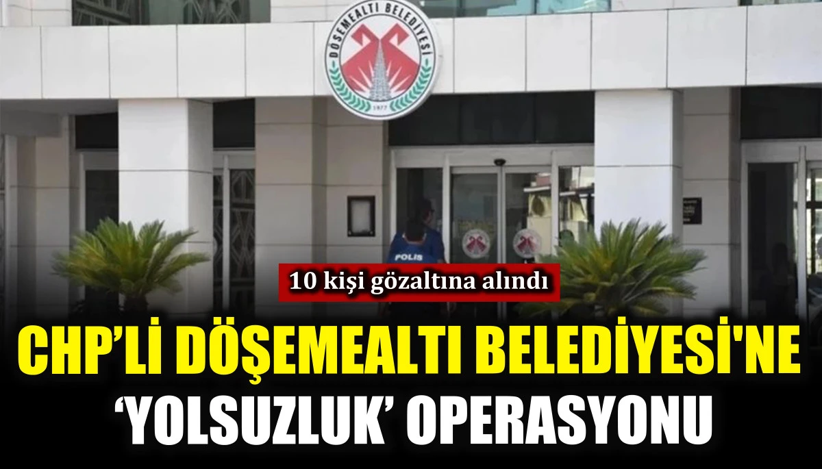 Antalya Cumhuriyet Başsavcılığı'nın CHP'li Döşemealtı Belediyesi’ne yönelik yürüttüğü ‘yolsuzluk’ soruşturması kapsamında sabah saatlerinde operasyon düzenlendi. İl Emniyet Müdürlüğü ekipleri 10 şüpheliyi gözaltına aldı.
