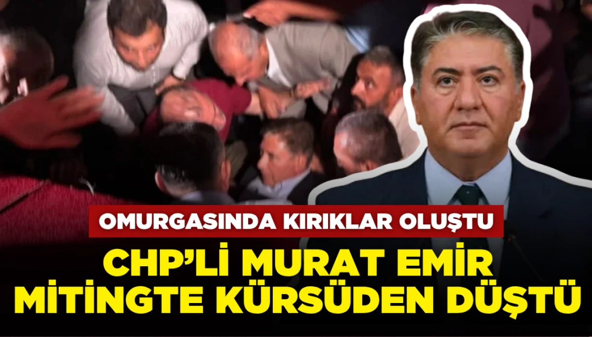 CHP'li Murat Emir, mitingde yaptığı konuşma sonrasında kürsüden düştü, omurgasında kırıklar oluştu. Ambulans uçakla hastaneye götürüldü.