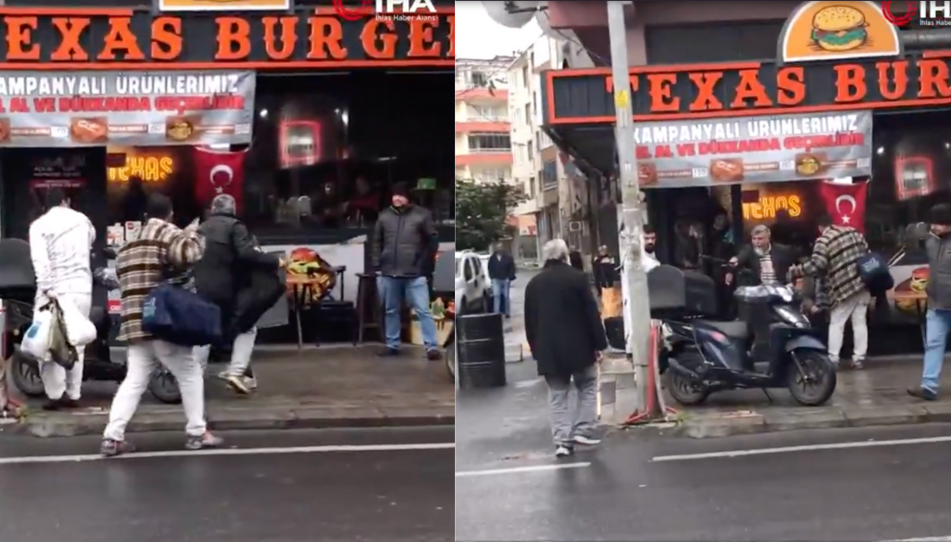 Tekirdağ’da 4 kişilik bir grup arasında tartışma çıktı ve giderek alevlendi. Baba oğlunu sakinleştirmek için bastonla oğluna vurdu daha sonra bastonu etraftaki insanlara salladı. Olay kameralara yansıdı.