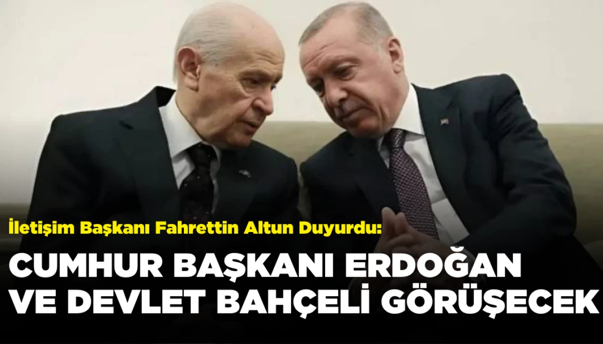 Cumhurbaşkanı ve AKP Genel Başkanı Recep Tayyip Erdoğan, MHP Genel Başkanı Devlet Bahçeli ile bugün saat 18.00’de bir görüşme gerçekleştirecek. Görüşme, Bahçeli’nin Ankara’daki konutunda yapılacak. İletişim Başkanı Fahrettin Altun, sosyal medya üzerinden yaptığı açıklamada, Erdoğan ve Bahçeli arasındaki görüşmenin detaylarını duyurdu.