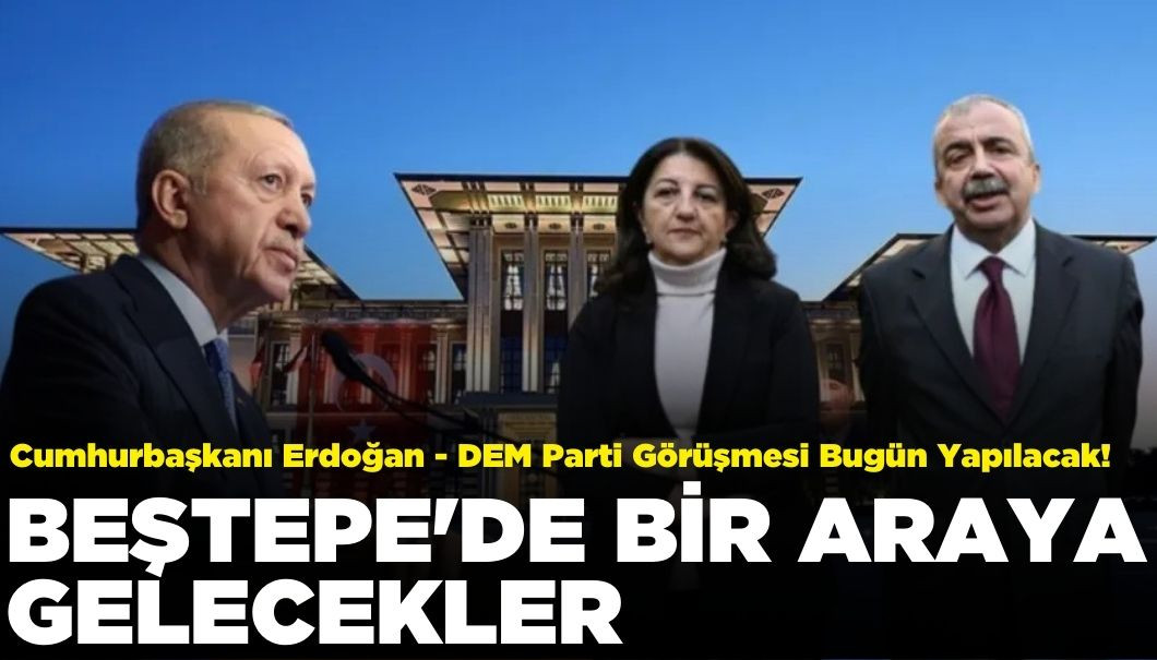 Cumhurbaşkanı Recep Tayyip Erdoğan, bu hafta içerisinde DEM Parti heyeti ile görüşeceğini duyurmuştu. Erdoğan, görüşmenin bugün gerçekleşeceğini açıkladı. Görüşme saat 13.30'da Beştepe'de yapılacak.