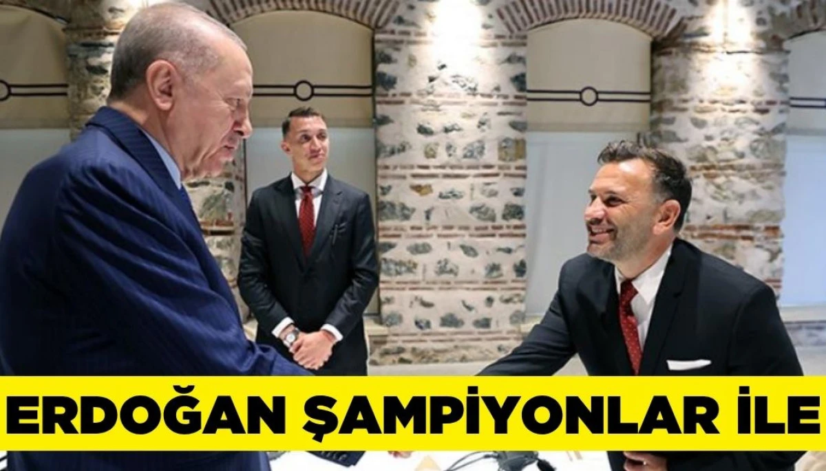 Galatasaray Kulübü Başkanı Dursun Özbek, futbolcular ve teknik heyetle tek tek tokalaşan Erdoğan, Süper Lig'deki 25. şampiyonluğunu elde eden sarı-kırmızılı ekibi tebrik etti.