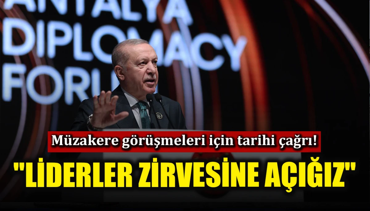 ‘Antalya Diplomasi Forumu Resmi Açılış Töreni’nde konuşan Cumhurbaşkanı Recep Tayyip Erdoğan, ABD/İsrail ve İran arasında devam eden savaşın sona erdirilmesi için yapılacak görüşmelere ilişkin “Tarafların istekli olması halinde Türkiye olarak Liderler Zirvesine açığız” dedi.