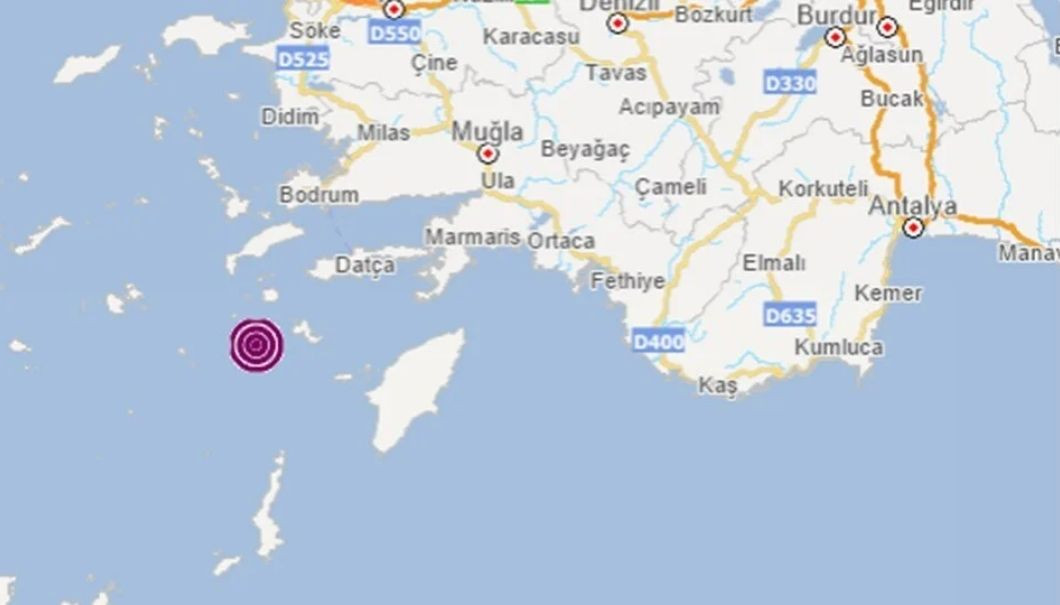Afet ve Acil Durum Yönetimi Başkanlığının internet sitesinde yer alan bilgiye göre, Akdeniz'de saat 11.02'de 4,5 büyüklüğünde sarsıntı kaydedildi. Muğla'nın Datça ilçesine 172,77 kilometre mesafede olan depremin 6,75 kilometre derinlikte meydana geldiği belirlendi.