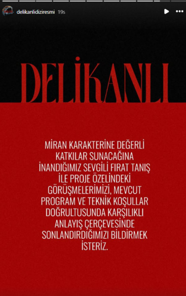 Dizinin sosyal medya hesabında konuya ilişkin,“Miran karakterine değerli katkılar sunacağına inandığımız sevgili Fırat Tanış ile proje özelindeki görüşmelerimizi, mevcut program ve teknik koşullar doğrultusunda karşılıklı anlayış çerçevesinde sonlandırdığımızı bildirmek isteriz” ifadeleri yer aldı.