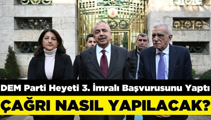 DEM Parti İmralı heyeti, teröristbaşı Abdullah Öcalan ile üçüncü kez görüşmek için Adalet Bakanlığı'na başvurdu. Konuya ilişkin bugün partisinin genel merkezinde açıklamalarda bulunan DEM Parti Sözcüsü Ayşegül Doğan, şu bilgileri verdi: