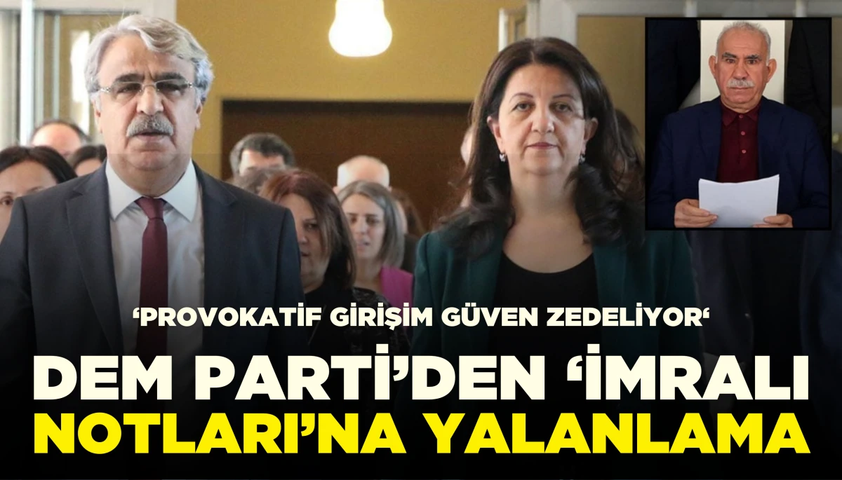 DEM Parti İmralı Heyeti, sosyal medyada “İmralı Adası’nda yapılan görüşmelere ait” olduğu iddiasıyla paylaşılan belgeler hakkında yazılı bir açıklama yaptı. Heyet, bu tür paylaşımların gerçeği yansıtmadığını ve “güven zedelemeyi amaçlayan provokatif girişimler” olduğunu belirtti.