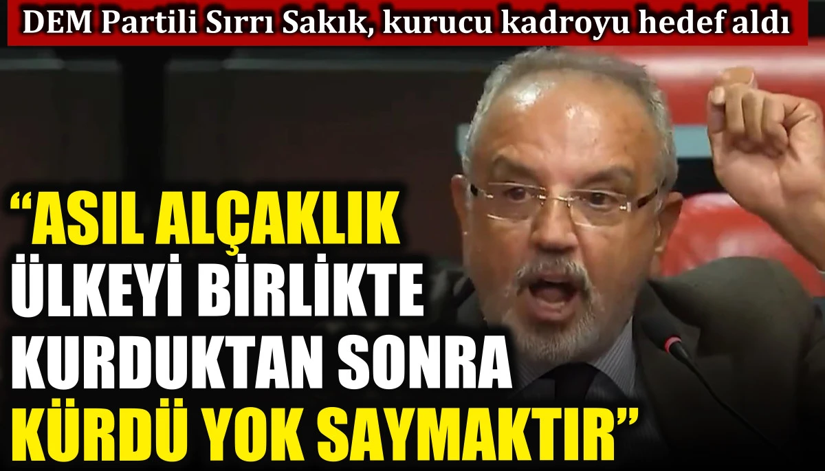DEM Partili Sırrı Sakık, mecliste yaptığı açıklamada cumhuriyetin kurucu kadrosunu hedef aldı. Sakık, “Asıl alçaklık nedir biliyor musunuz? Ülkeyi birlikte kurduktan sonra dönüp Kürdü yok sayanlar alçaktır” ifadelerini kullandı.