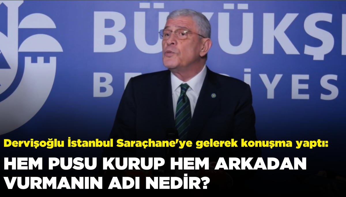 İYİ Parti Genel Başkanı Müsavat Dervişoğlu, İmamoğlu'nun gözaltına alınmasına ilişkin İstanbul Saraçhane'ye gelerek konuşma yaptı. Dervişoğlu, "o Karadeniz çocuğuna da sorarlar; hem pusu kurup hem arkadan vurmanın adı nedir?" dedi.