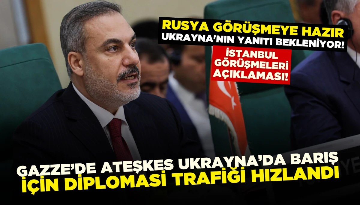 Rusya-Ukrayna savaşındaki barış çabaları kapsamında İstanbul'da gerçekleştirilen görüşmelerin üçüncü turu için Rus tarafının görüşmeye hazır olduğunu bildiren Dışişleri Bakanı Hakn Fidan,Ukrayna tarafının yanıtının beklendiğini ifade etti.