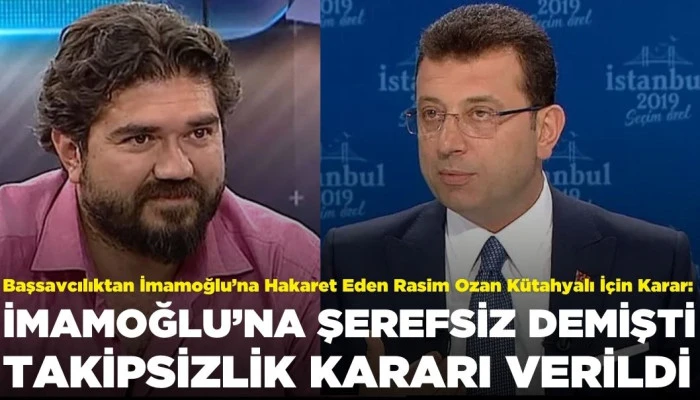 Büyükçekmece Cumhuriyet Başsavcılığı, Rasim Ozan Kütahyalı'nın tutuklu Ekrem İmamoğlu'na yönelik, "Risk alarak söylüyorum her türlü şerefsizliği yapıyorsun" hakaretine ilişkin kovuşturmaya yer olmadığına karar verdi.