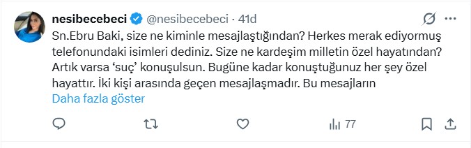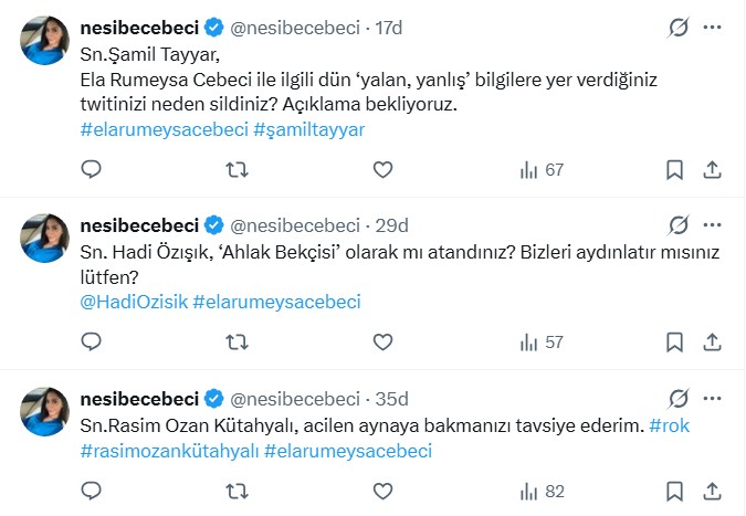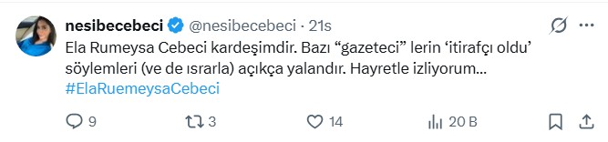 Abla Nesibe Cebeci ayrıca sosyal medya hesabından şu paylaşımları yaptı: