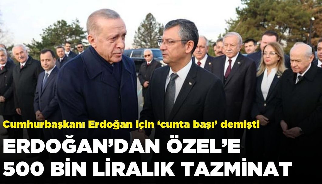Cumhurbaşkanı Recep Tayyip Erdoğan, CHP lideri Özgür Özel’e ‘cunta başı’ ifadesi sebebiyle 500 bin liralık tazminat davası açtı.