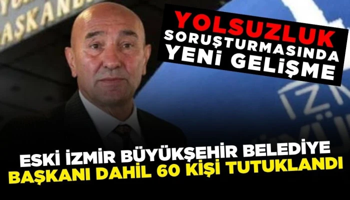İzmir Büyükşehir Belediyesine yönelik yolsuzluk soruşturması kapsamında gözaltına alınan, aralarında eski İzmir Büyükşehir Belediye Başkanı Tunç Soyer ve CHP İzmir İl Başkanı Şenol Aslanoğlu'nun da bulunduğu 60 kişi tutuklandı.